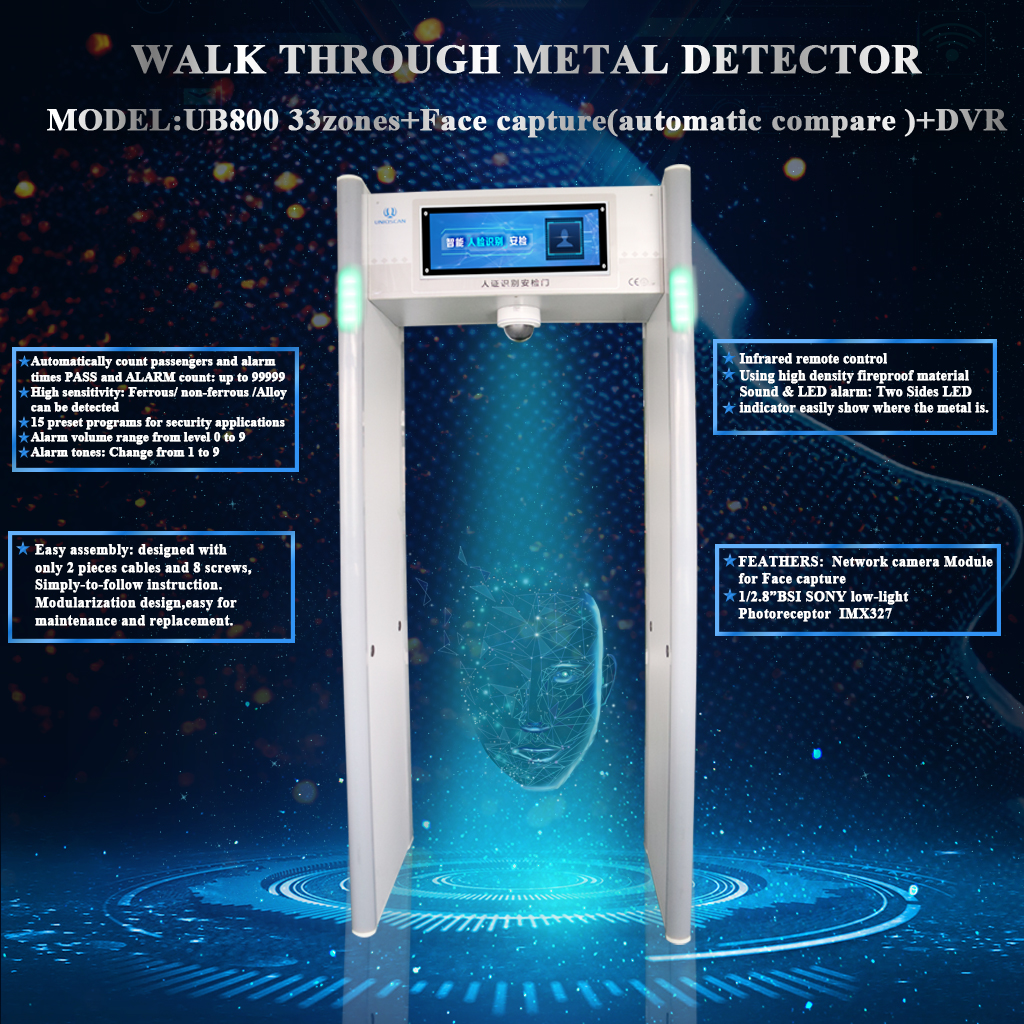 33 Zones Walk Through Metal Detector With Face Capture Automatic Compare And NVR